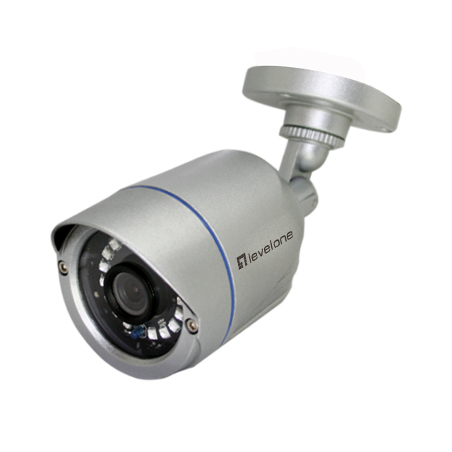 • The LevelOnThe LevelThe Levele 1080P CCTV Camera is a high-quality surveillance device which conforms to weatherproof standard IP67 and is capable of operating in temperatures from -20°C to 55°C, making it an ideal choice for home surveillance networks. Built-in infrared (IR) supports night monitoring for distances up to 30 metres, providing crystal-clear images at any time, under any light conditions. In addition, an IR correction feature avoids shifts of focus in both visible and infrared ranges, ensuring clear vision twenty-four hours a day. The quality cameras also offer full-screen, high resolution recording and playback. The 1080P CCTV Camera is a great accessory for use with the LevelOne DSK-x001 4/8-Channel CCTV Surveillance Kit, providing everything you need for safe, secure surveillance of your home or business for the utmost in peace-of-mind.