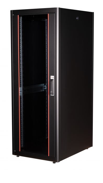 These cabinets, of the Basic Flex Line, are engineered for the efficient and user-friendly installation of both active and passive network components, prioritizing streamlined cable management. Crafted from steel sheets up to 1.5 mm thick, every cabinet guarantees excellent stability, attributed to a unique plate curving technique, forming a sturdy steel framework. They are finished with a powder coating in shades of grey (RAL 7035) and black (RAL 9005).