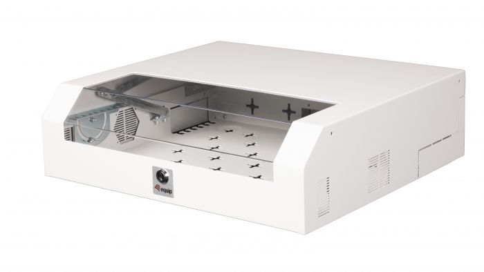 • The Slim Flex Wall Mounting Cabinets are ideal for housing both active and passive components. Designed for simplicity, they enable swift and hassle-free installations. Their contemporary design seamlessly blends into office or home settings. Users are presented with dual installation options: The front side features a versatile 3U rail that can rotate vertically, be set horizontally, or even angled. The rear side has a fixed 2U rail, suitable for passive network components, for instance. The lower housing area has pre-punched mounting holes to accommodate non-rack-mountable equipment like DSL routers. Alternatively, a device mounting plate can be added, which is available separately.
