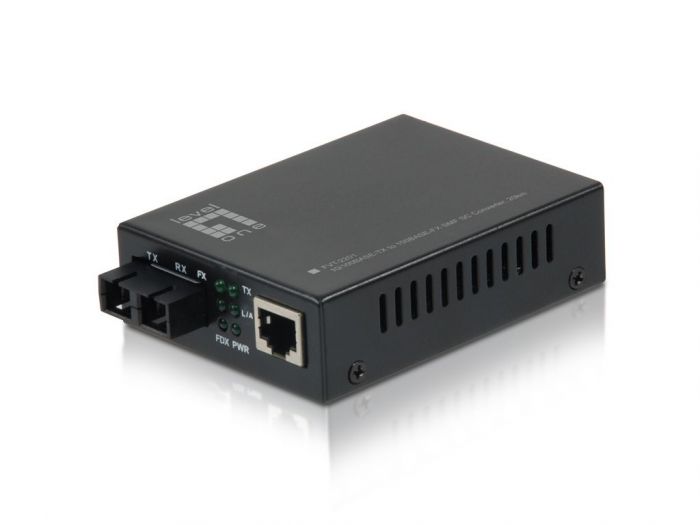 • The FVT-2201 SMF SC media converter is able to convert network signals between copper and fiber-optic based networks. The converter provides a 10/100Base-TX RJ-45 port, supports full duplex and half duplex switch connectivity and 10Base-T and 100Base-TX auto-sensing. Used in single-mode with fibre-optic cabling, this can extend a network range up to 20km.