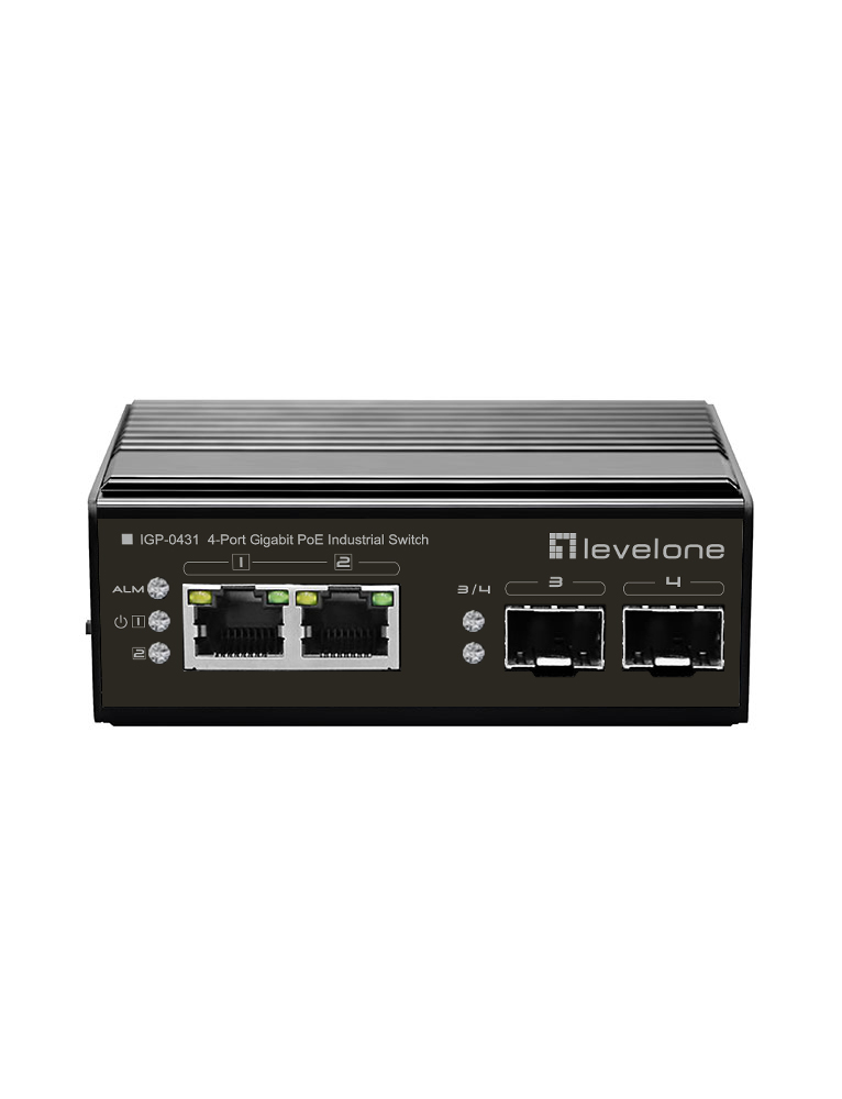 • LevelOne IGP-0431 Industry Ethernet Switch provides 2 PoE ports 10/100/1000Base plus 2 port Gigabit SFP to enable high speed network at mission-critical environment. With the industrial standard DIN-rail mount; this switch can be easily installed in the cabinet, plus the clearly visible status LEDs provide simple monitoring of port link activity. Moreover, the SFP slots support pluggable modules that enabling you to choose from a variety of transceivers. This switch is Power Sourcing Equipment (PSE), and it is fully complied with IEEE 802.3at/bt PoE standard at maximum 90W power budget per port. It helps to save infrastructure wiring costs dramatically by eliminating electric wiring and less UPS needed. Also, it is compatible with IEEE802.3af standard PD devices.