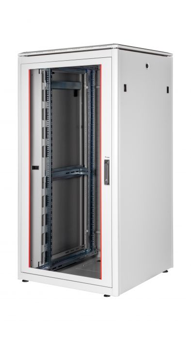 Diseñados para una instalación fácil de usar de componentes de red activos y pasivos, estos gabinetes priorizan la gestión eficiente de cables. Construido con láminas de acero de hasta 1,5 mm de espesor, cada gabinete garantiza una estabilidad excepcional, gracias a una técnica única de curvado de placas. Están elegantemente acabados con una capa de polvo en tonos de gris (RAL 7035) y negro (RAL 9005).