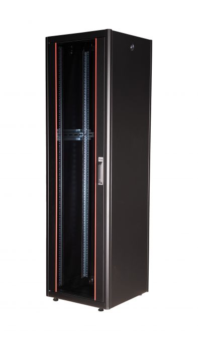 Questi armadi, della linea Basic Flex, sono progettati per l'installazione efficiente e intuitiva di componenti di rete sia attivi che passivi, dando priorità alla gestione semplificata dei cavi. Realizzato con lamiere d'acciaio spesse fino a 1,5 mm, ogni armadio garantisce un'eccellente stabilità, attribuita a un'esclusiva tecnica di curvatura delle piastre, che forma una robusta struttura in acciaio. Sono rifiniti con verniciatura a polvere nei colori grigio (RAL 7035) e nero (RAL 9005). Per le postazioni di installazione difficili che sono meno accessibili, l'armadio è progettato per essere smontato. Le porte sono facilmente rimovibili e i loro fermi possono essere commutati tra l'orientamento destro e sinistro. Inoltre, il tetto è predisposto per l'integrazione di un'unità di ventilazione dell'aria. All'interno, ogni armadio ospita due set (4 pezzi) di guide profilate da 483 mm (19"). Queste guide, zincate e contrassegnate con unità di altezza leggibili da entrambe le direzioni, sono regolabili in profondità. Per facilitare installazioni di apparecchiature estese, sono abbinate a barre di supporto di profondità supplementari. La gestione dei cavi è fondamentale per il design. La base dell'armadio è dotata di un ingresso cavi punzonato schermato con una piastra metallica. Per gli armadi più larghi da 800 mm, sono presenti ingressi cavi punzonati aggiuntivi coperti di plastica su entrambi i lati. Questi ingressi sono replicati sul tetto, con uno singolo per gli armadi larghi 600 mm e tre per quelli larghi 800 mm. Per soddisfare le diverse esigenze operative, è prontamente disponibile un vasto assortimento di accessori, tra cui strumenti per la gestione dei cavi e ripiani.